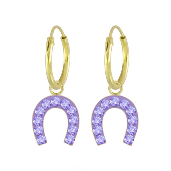 Silver Horseshoe Crystal Charm Hoop Earrings