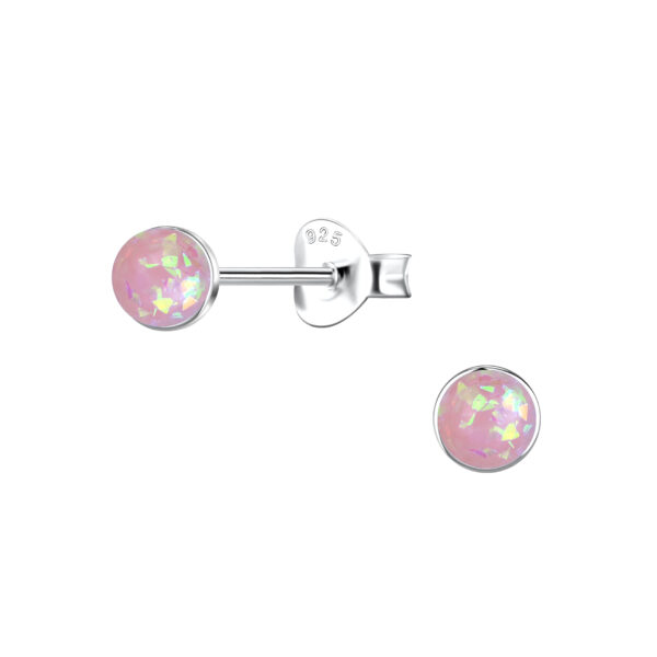 4mm Round Resin Opal Silver Stud Earrings