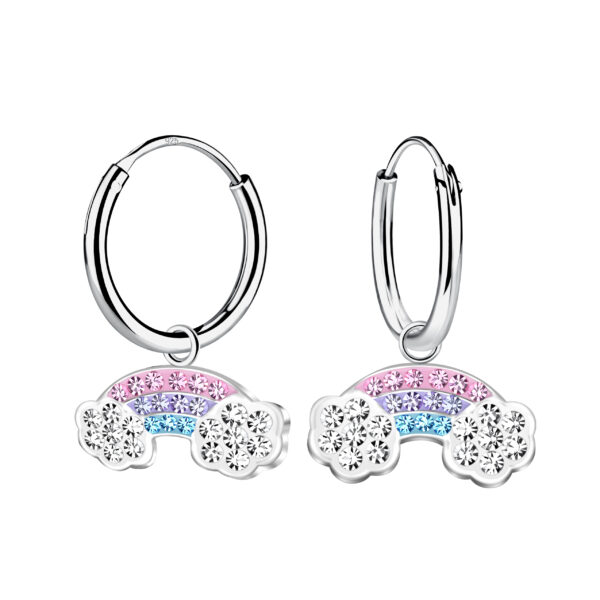 Silver Rainbow Charm Hoop Earrings