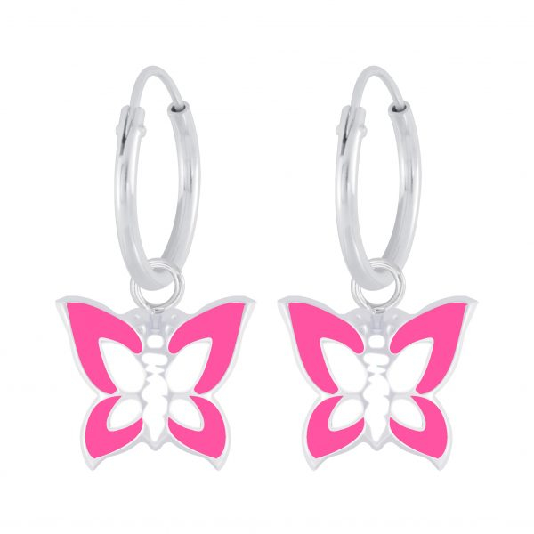 Silver Butterfly Charm Hoop Earrings