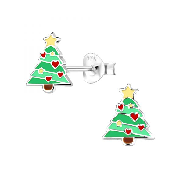 Silver Christmas Tree Stud Earrings