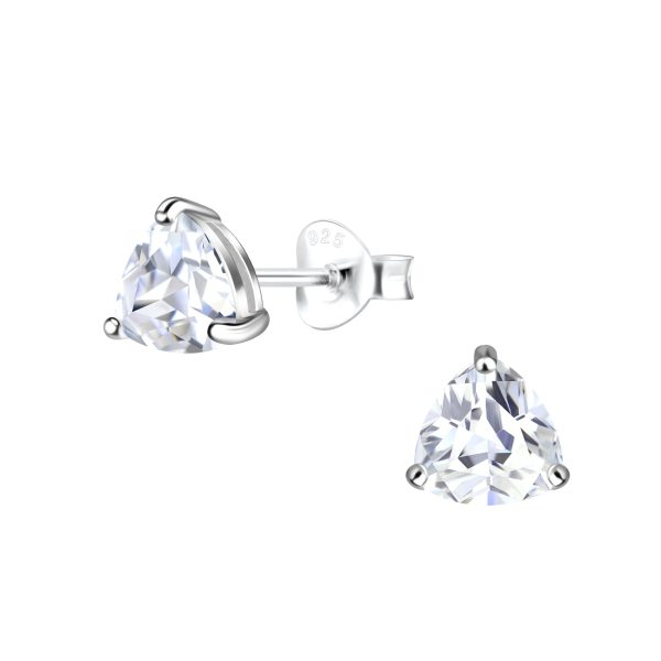 6mm Trillion Cubic Zirconia Silver Stud Earrings