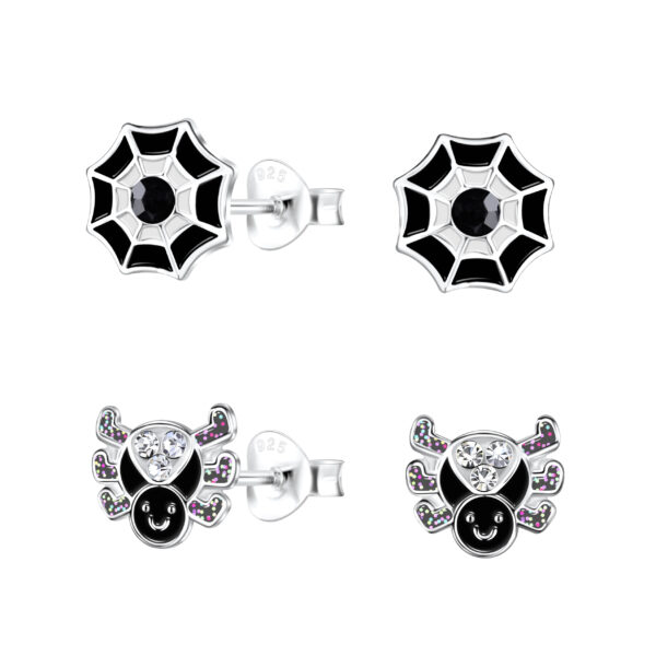 Silver Spider Stud Earrings Set