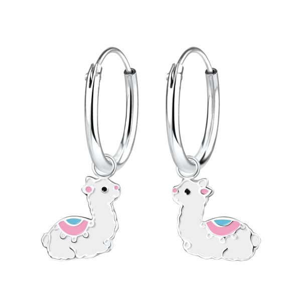 Silver Alpaca Charm Hoop Earrings