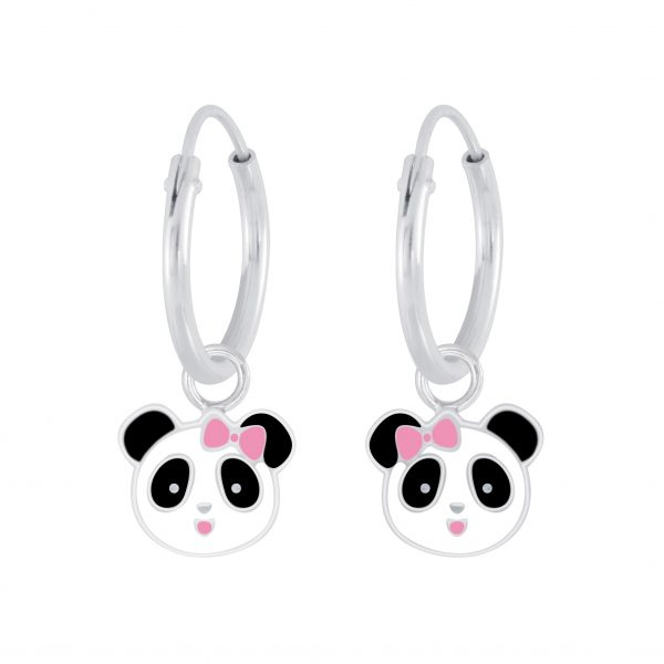 Silver Panda Charm Hoop Earrings