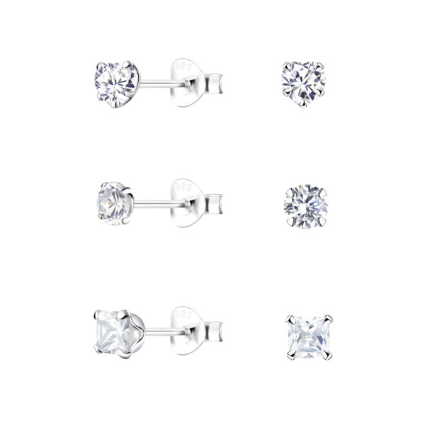 Silver Mixed Cubic Zirconia Stud Earrings Set