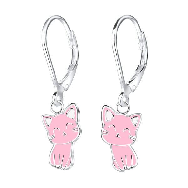 Silver Cat Lever Back Earrings
