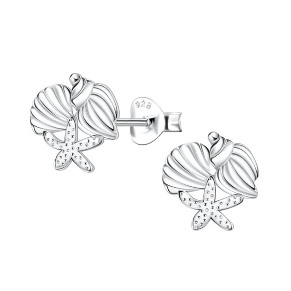 Silver Starfish and Shell Stud Earrings