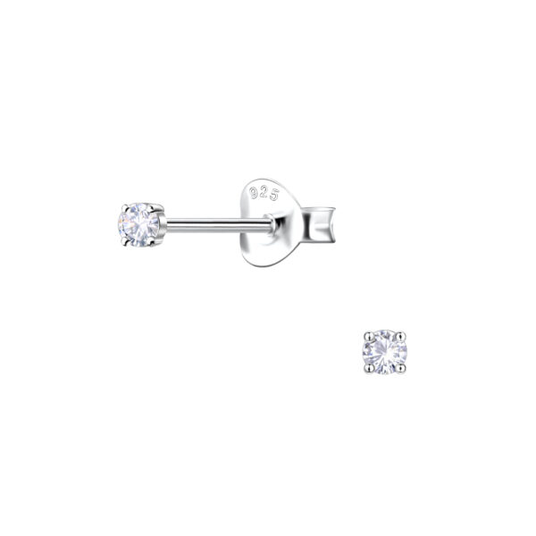 2mm Round Cubic Zirconia Silver Stud Earrings