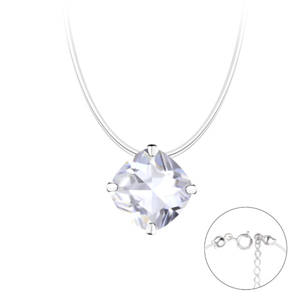 8mm Cushion Cubic Zirconia Silver Invisible Necklace