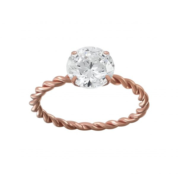 8mm Round Cubic Zirconia Silver Twisted Ring