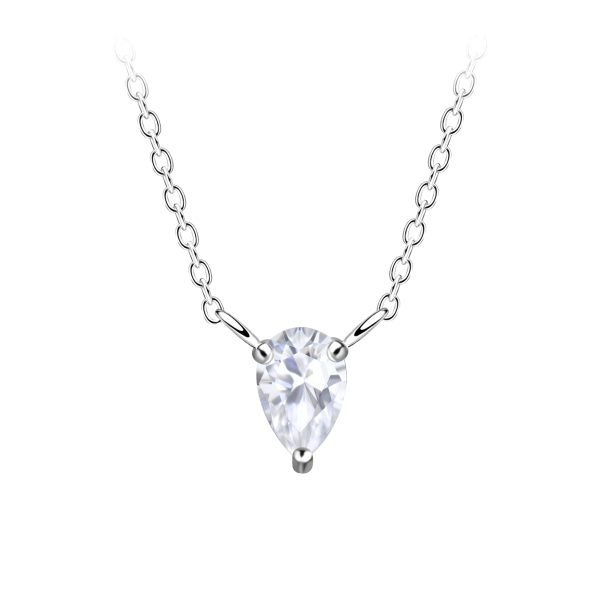 4x6mm Pear Cubic Zirconia Silver Necklace