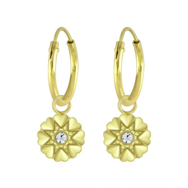 Silver Flower Crystal Charm Hoop Earrings