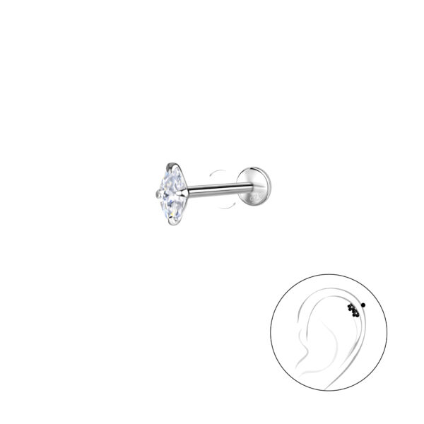 2x4mm Marquise Cubic Zirconia Silver Labret
