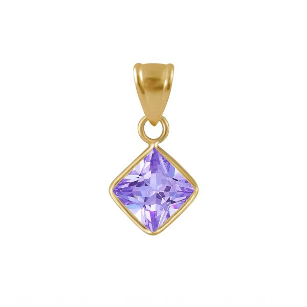 6mm Square Cubic Zirconia Silver Pendant