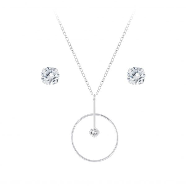 Silver Single Stone Necklace and Stud Earrings Set