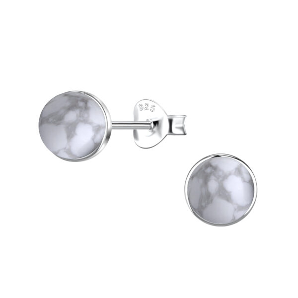 6mm Round Imitation Stone Silver Stud Earrings