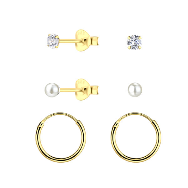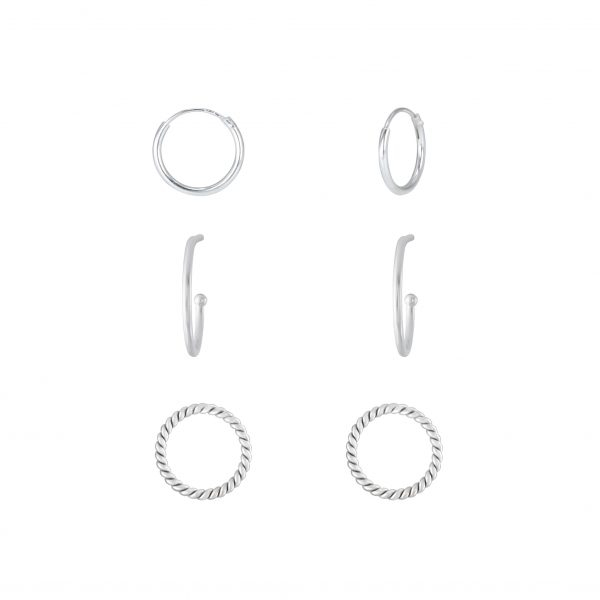 3mm Mixed Silver Studs and Hoop Earrings Set