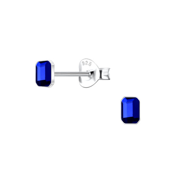 2.5x4mm Rectangle Cushion Crystal Silver Stud Earrings