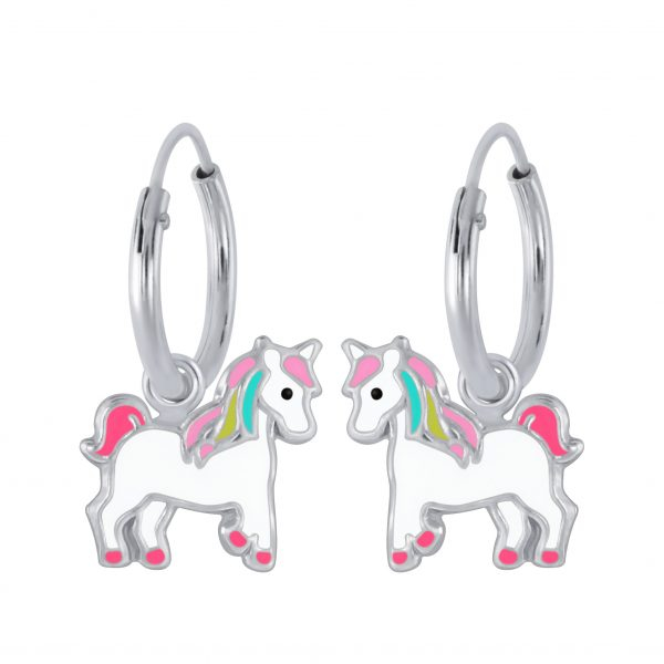 Silver Unicorn Charm Hoop Earrings