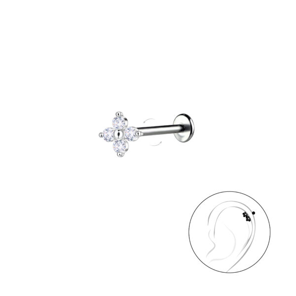 Silver Flower with Titanium Labret
