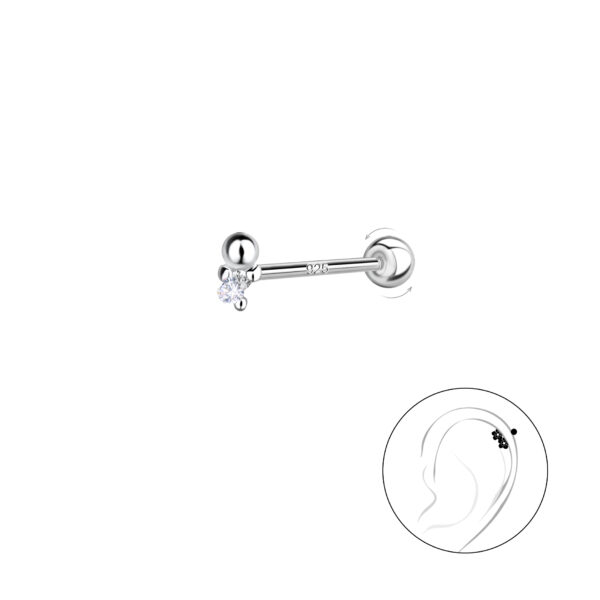 Silver Geometric Cartilage Stud with Ball Screw Back