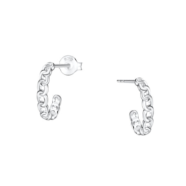 Silver Chain Link Half Hoop Stud Earrings
