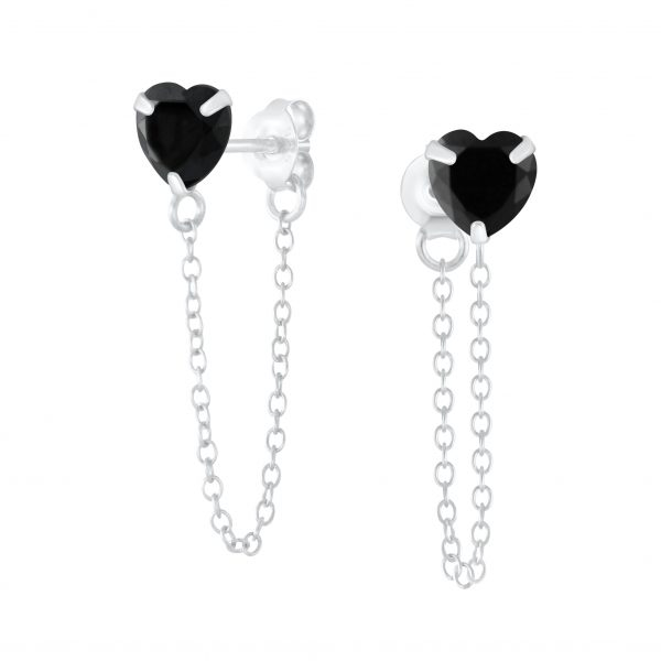 6mm Heart Cubic Zirconia Silver Stud Earrings with Chain