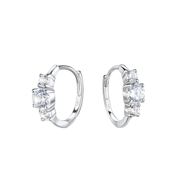 12mm Silver Three Stone Huggie Earrings