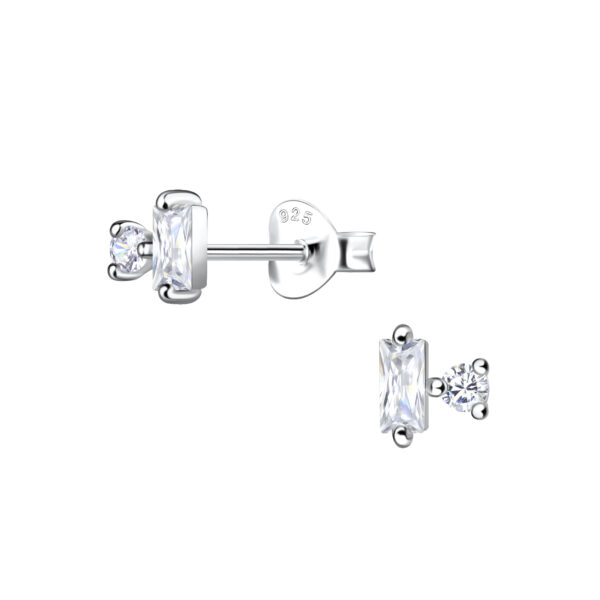 6x8mm Baguette Cubic Zirconia Silver Earrings