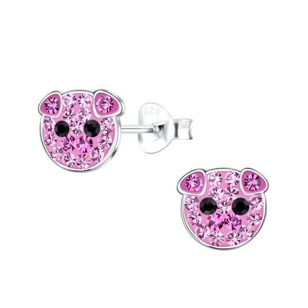 Silver Pig Stud Earrings