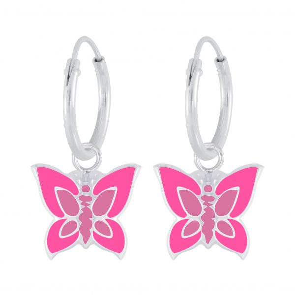 Silver Butterfly Charm Hoop Earrings