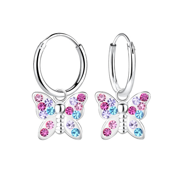 Silver Butterfly Crystal Charm Hoop Earrings