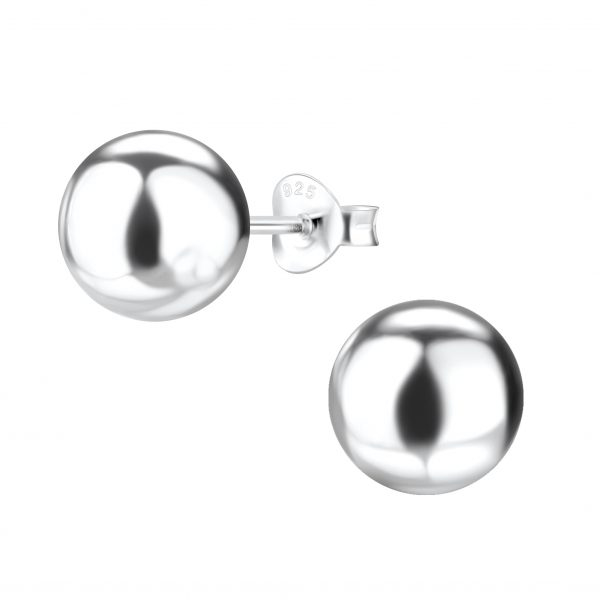 9mm Silver Ball Stud Earrings