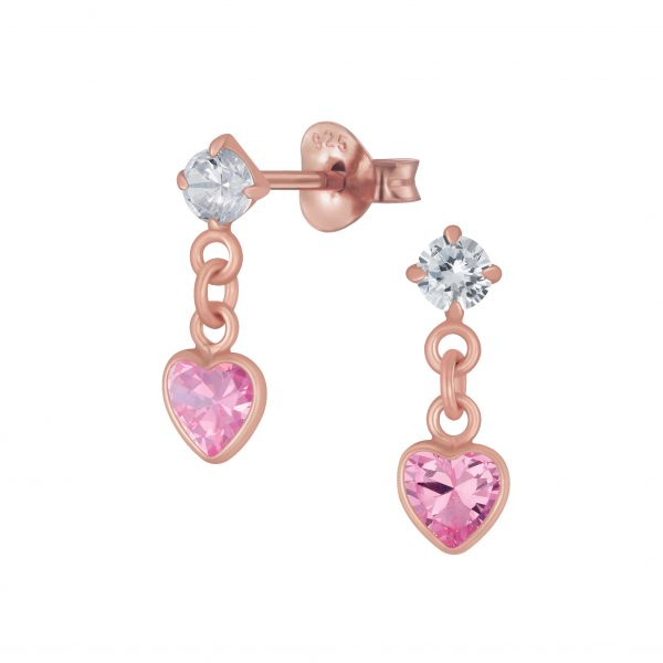 Silver Heart Cubic Zirconia Drop Stud Earrings
