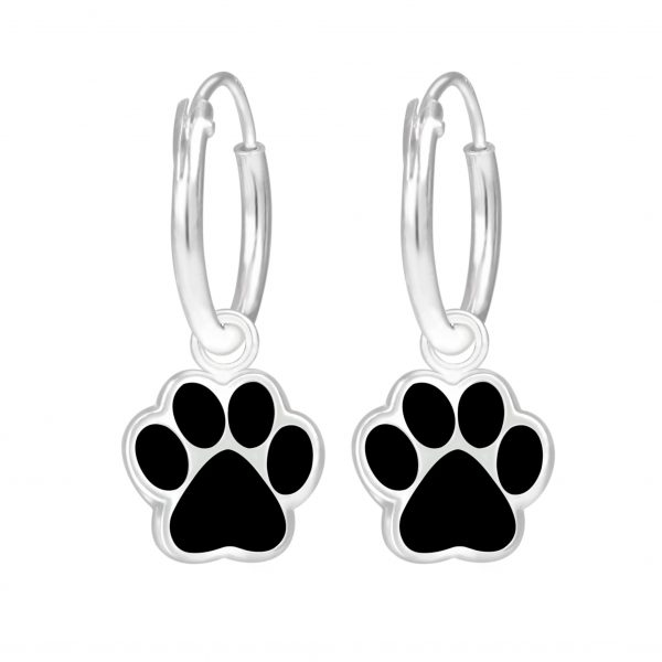 Silver Paw Print Charm Hoop Earrings