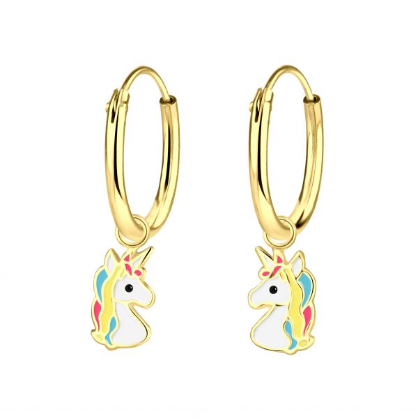 Silver Unicorn Charm Hoop Earrings