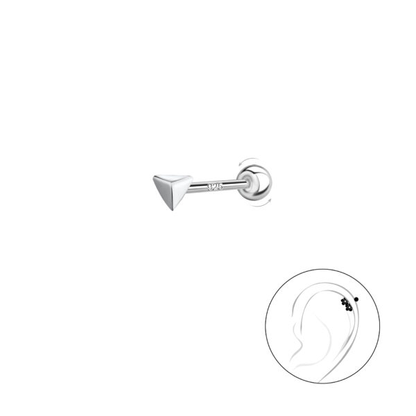 Silver Triangle Cartilage Stud with Ball Screw Back