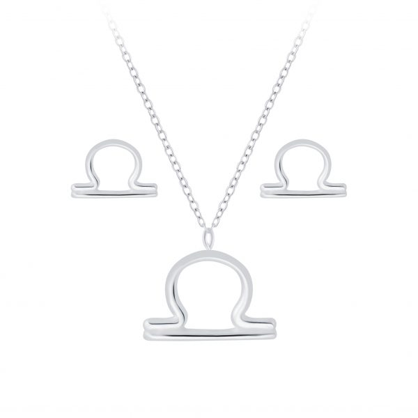 Silver Libra Zodiac Sign Necklace and Stud Earrings Set