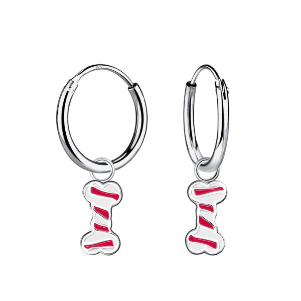 Silver Bone Charm Hoop Earrings