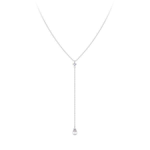 Silver Single Stone Y Necklace with Teardrop Pearl