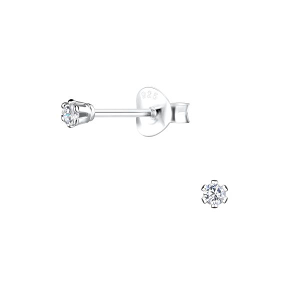 2mm Round Cubic Zirconia Silver Stud Earrings