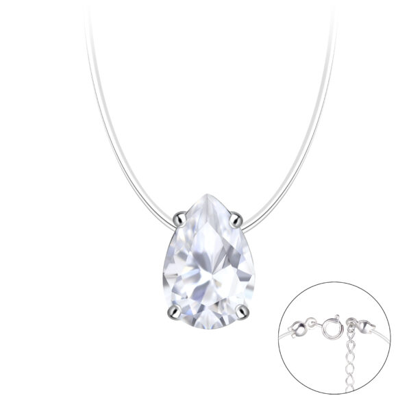 7x10mm Pear Cubic Zirconia Silver Invisible Necklace