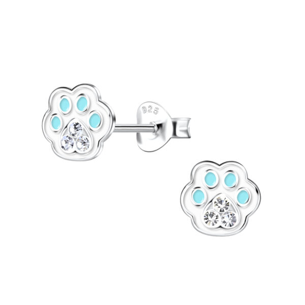 Silver Paw Print Stud Earrings