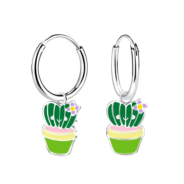 Silver Cactus Charm Hoop Earrings