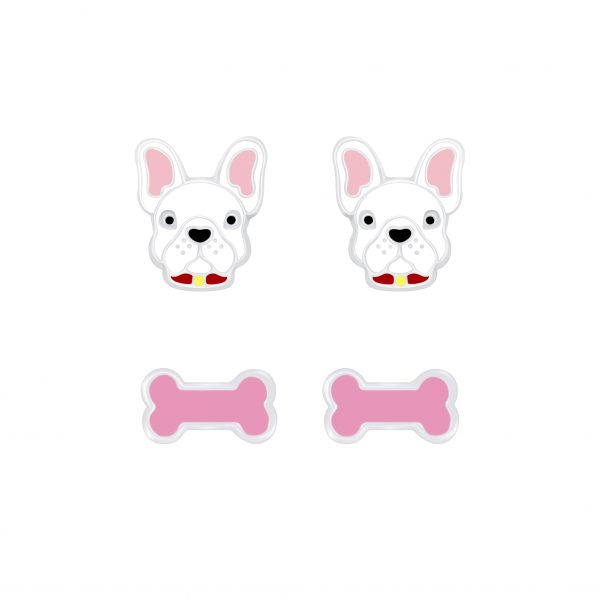 Silver Dog Lovers Stud Earrings Set