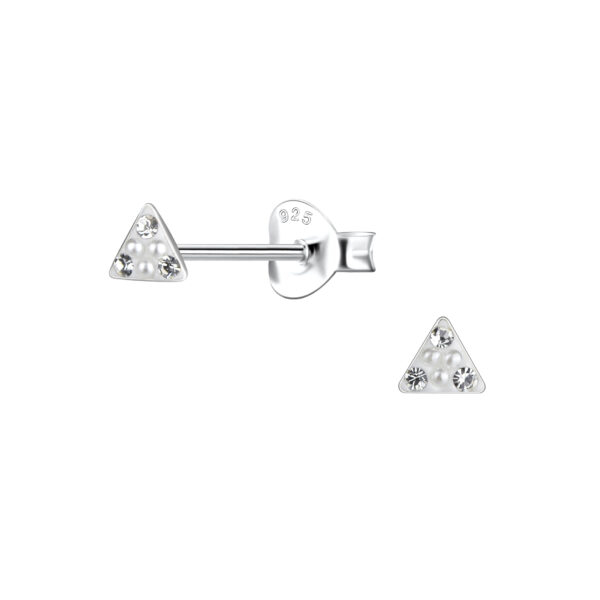 Silver Triangle Stud Earrings with Pearl and Crystal