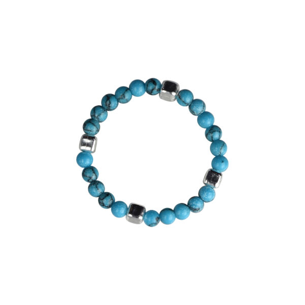 Silver Ball and Turquoise Bead Elastic Ring