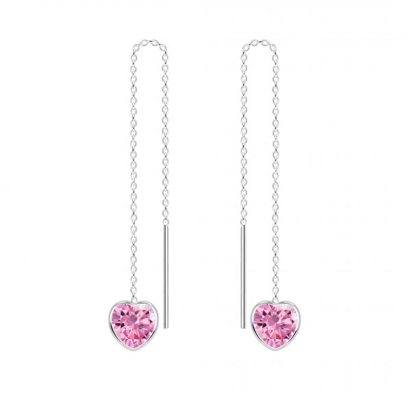 6mm Heart Cubic Zirconia Silver Thread Through Earrings