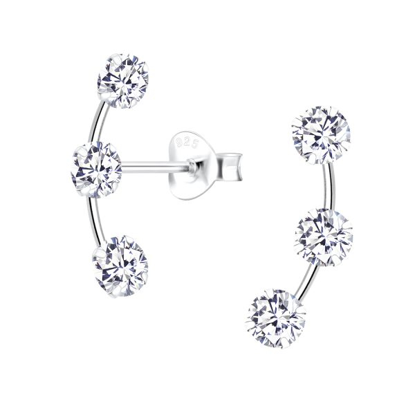 Cubic Zirconia Line Silver Stud Earrings